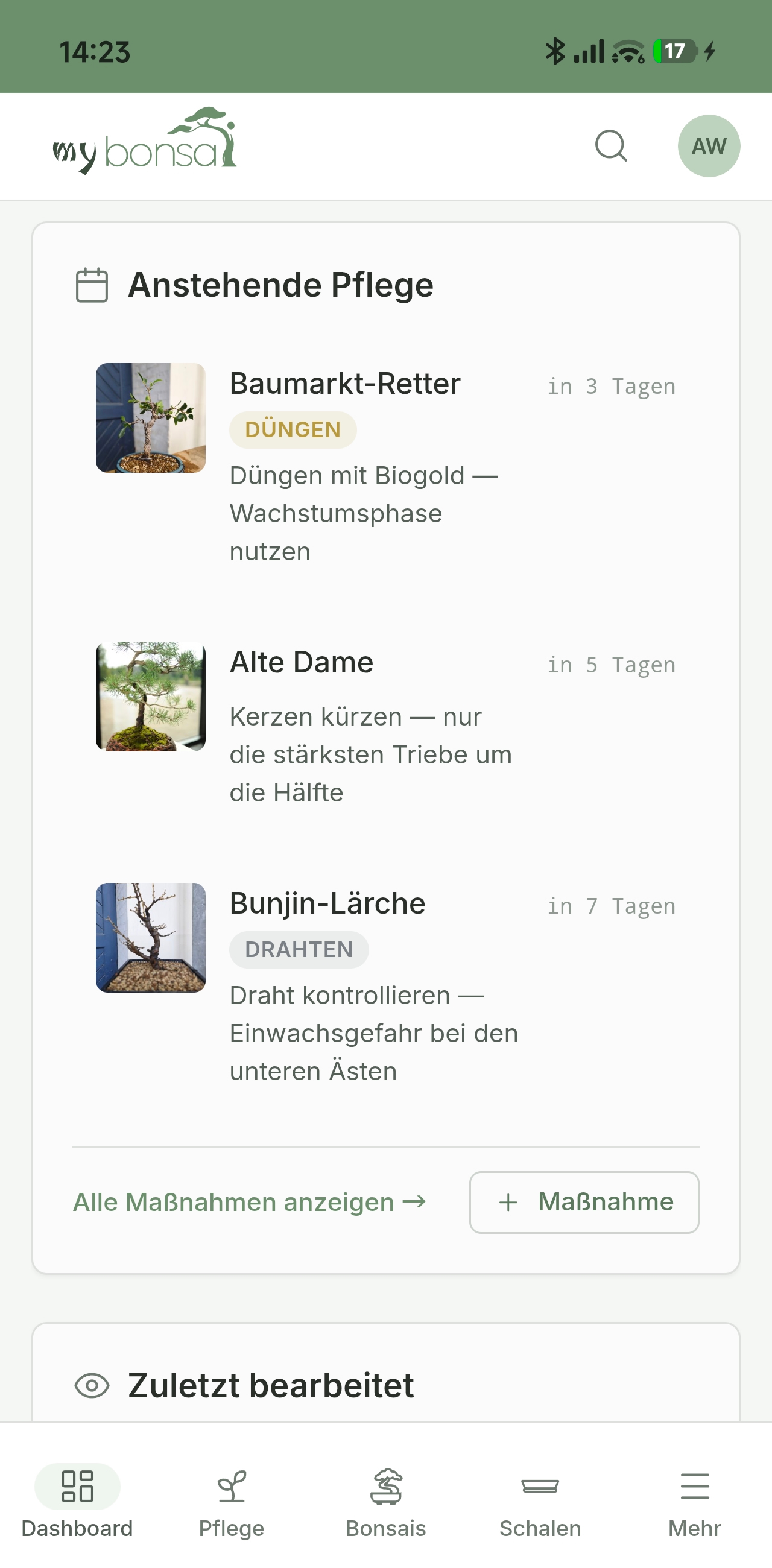 Sammlung, Pflege, Entwicklung — alles an einem Ort. Für Hobby-Enthusiasten, die ihre Bonsais ernst nehmen.